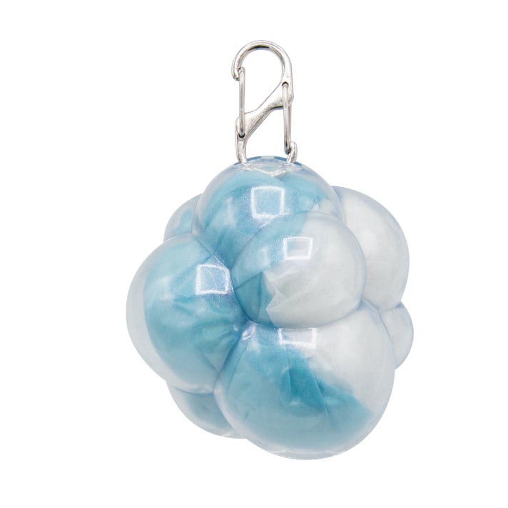 ぶくぶく泡のシャボン玉ケースは、エコバッグを入れても出してもアクセントになるデザイン。 カラビナ付きでバッグチャームとしても楽しめます。