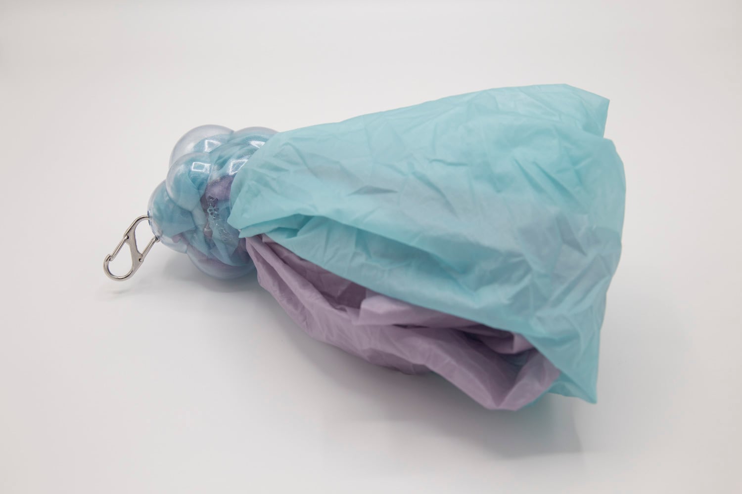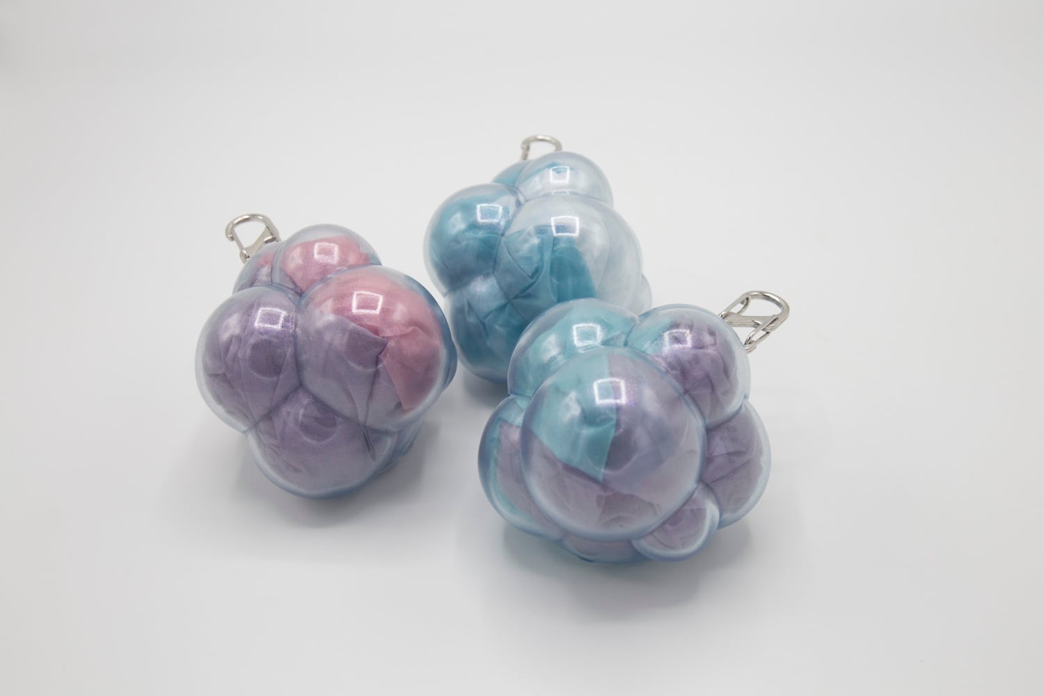 ​「bagble (バグブル)」は、シャボン玉をぶくぶく吹いたときにできる小さな泡をイメージしたソフビ素材のケースにエコバッグを収納したアイテムです。