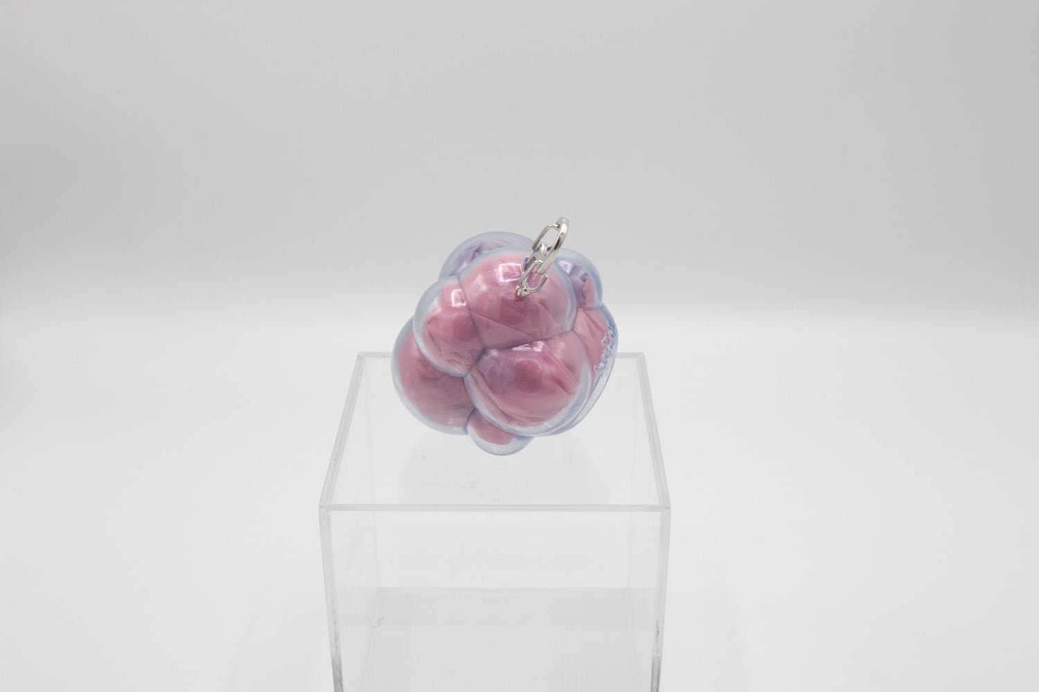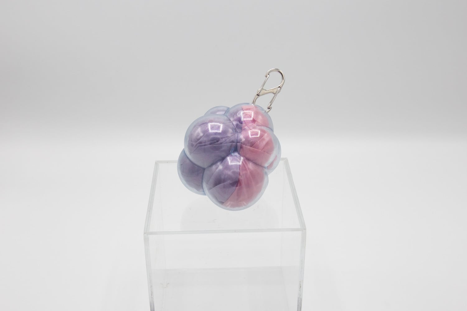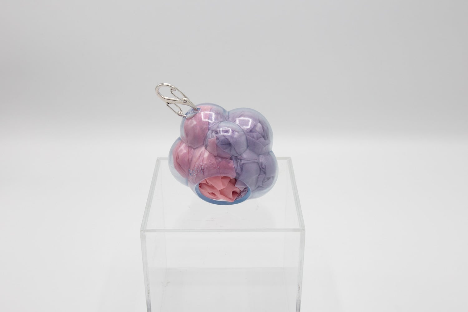 日本製ソフビフィギュアと同じ製法で作られたケースは、手になじむやわらかな質感で、エコバッグの出し入れもスムーズです。透明素材に数色のラメを加えることで、見る角度によってシャボン玉のようにさまざまな色に輝きます。